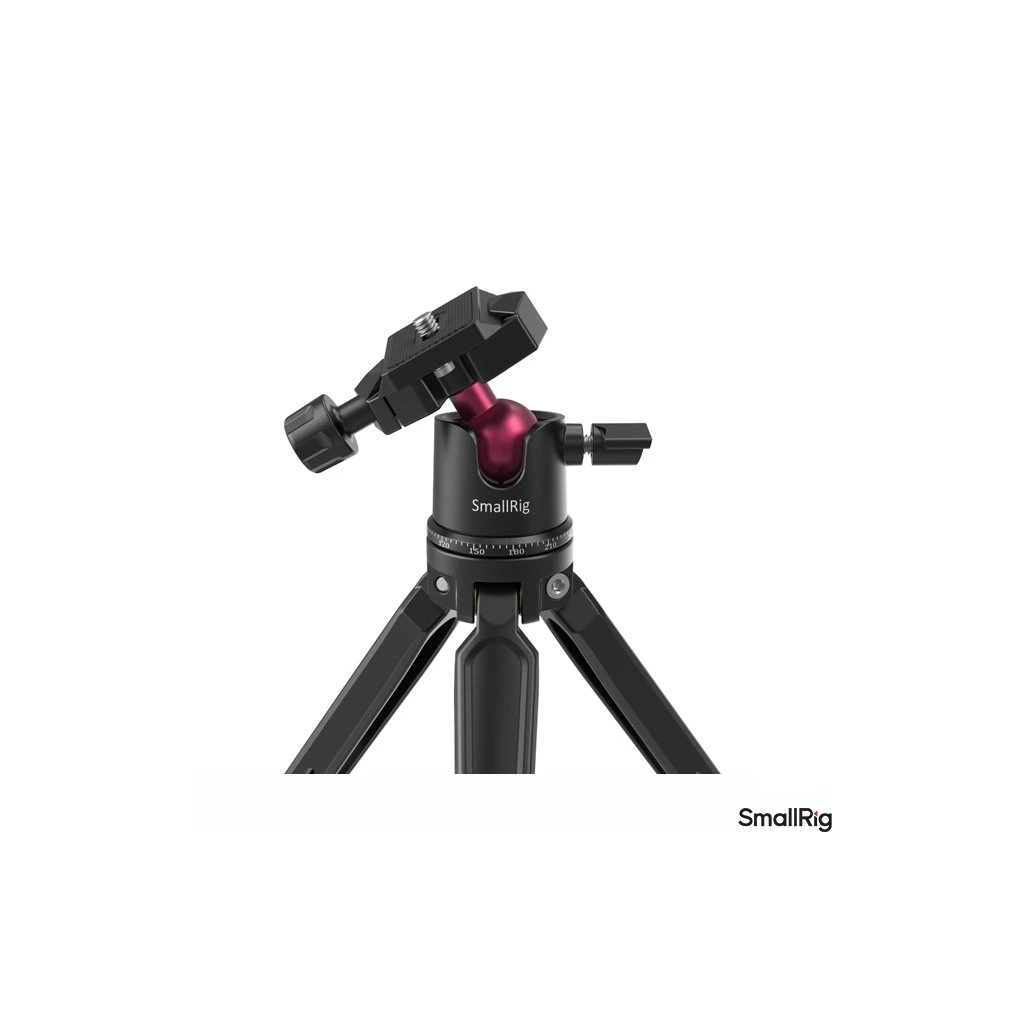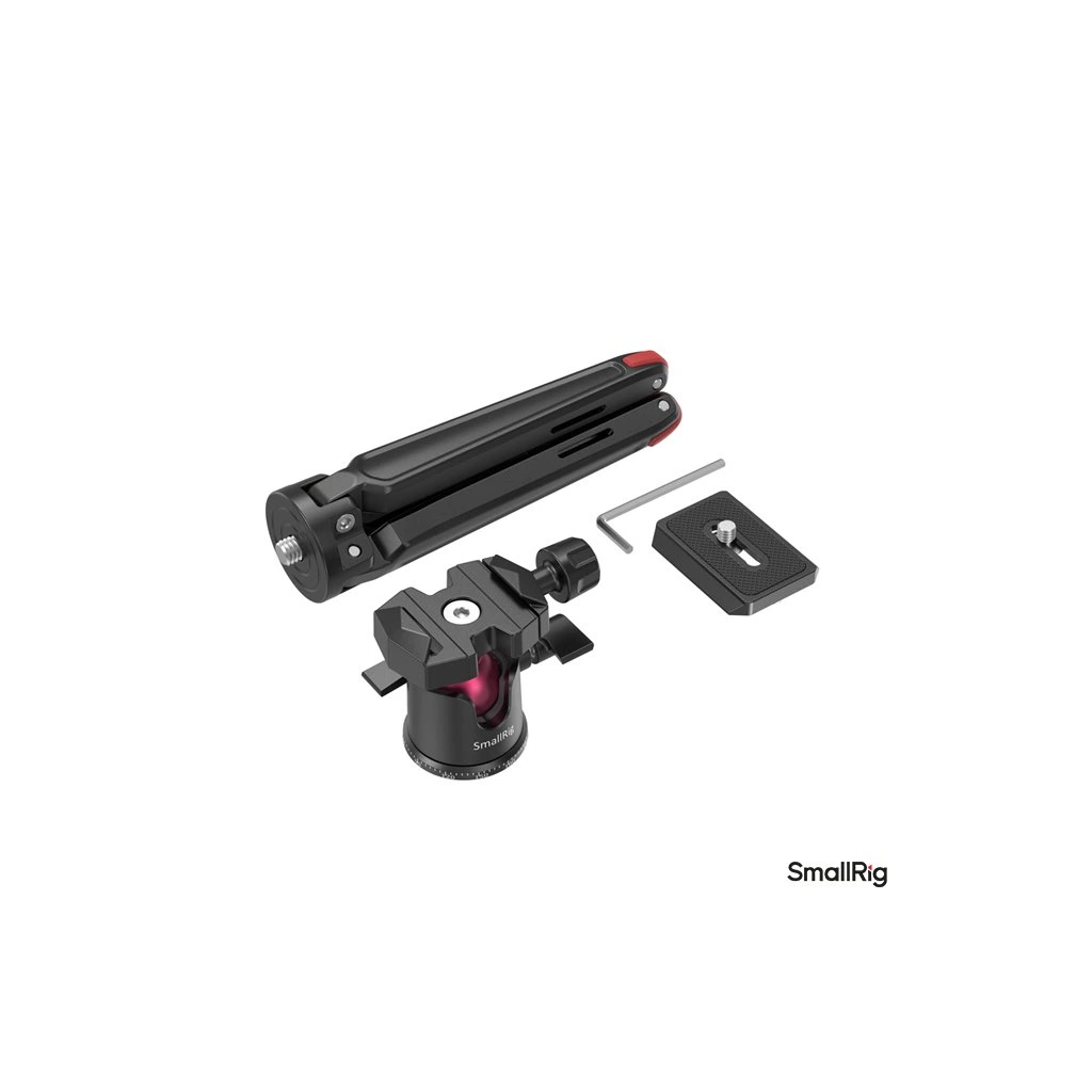 Mini stolní stativ SmallRig s panoramatickou kulovou hlavou je kompaktní řešení pro rychlé a stabilní postavení menších fotoaparátů, mirrorless fotoaparátů či smartphone při stolním natáčení, videohovorech nebo produktové fotografii. Díky robustní konstrukci z hliníkové slitiny poskytuje stativ vysokou stabilitu i při zachování nízké hmotnosti a snadné přenosnosti.