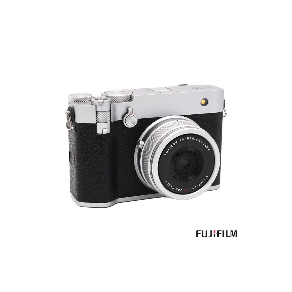 GFX100RF je vybaven pevným objektivem 35 mm (ekvivalent 28 mm ve formátu kinofilmu) se světelností f/4, který je ideální pro fotografování krajin, street fotografie i reportáží díky širokému záběru a přirozené perspektivě. Používá deset členů v osmi skupinách, včetně dvou asférických čoček a povrchové úpravy Nano GI Coating pro objektivy s velkým zakřivením, která potlačuje odrazy světla i v okrajových oblastech objektivu. Díky této konstrukci je objektiv kompaktní a zároveň poskytuje vynikající kvalitu obrazu. Ostrost je konzistentní od středu ke krajům, zatímco automatické zaostřování je díky DC motoru plynulé a přesné.