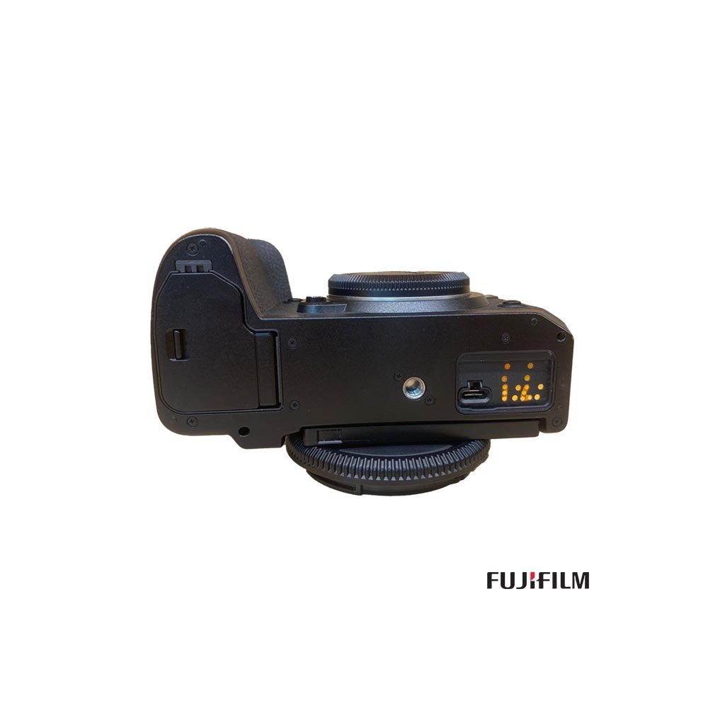 Tělo fotoaparátu kombinuje odolnost a ergonomii: magnéziová konstrukce je utěsněná proti prachu, vlhkosti a teplotám až –10 °C, disponuje velkým EVF OLED 5,76 Mpx, výklopným 3" LCD displejem a dvěma sloty na paměťové karty (CFexpress typu B a SD UHS-II). Výdrž baterie NP-W235 dosahuje až 720 snímků v ekonomickém režimu, což spolu s kompaktním designem a pevnou konstrukcí činí X-H2 ideální volbou pro profesionální fotografy a tvůrce videa.